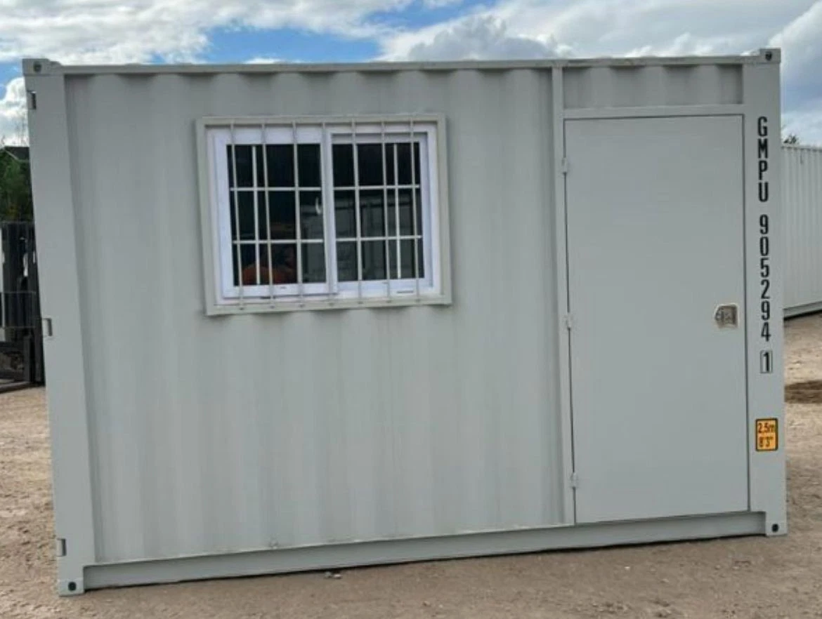 • Integrated Workspace: The container is fitted with a side door for separate entry and a window, allowing for natural light inside the unit .